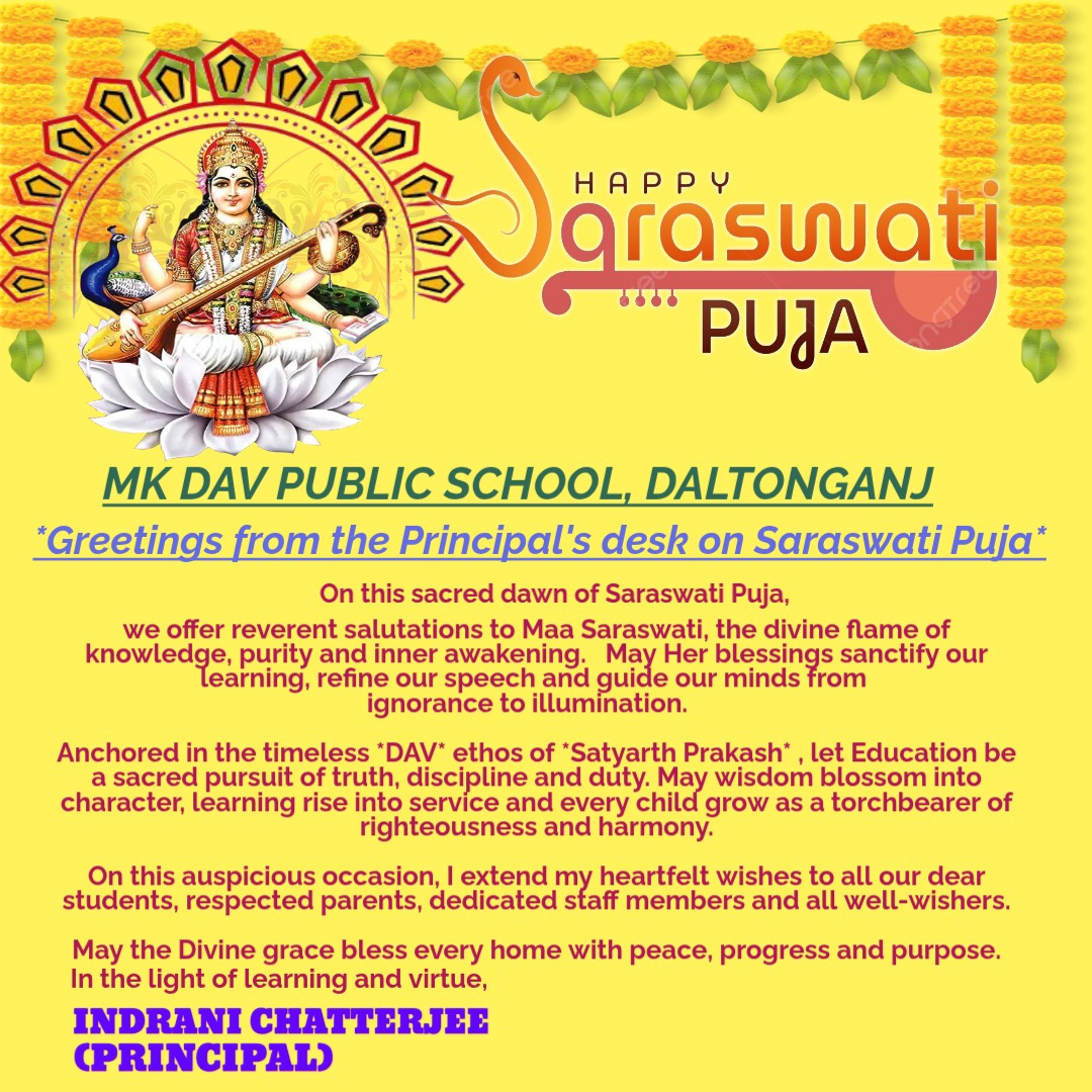 Greetings from the Principal's Desk on Saraswati Puja