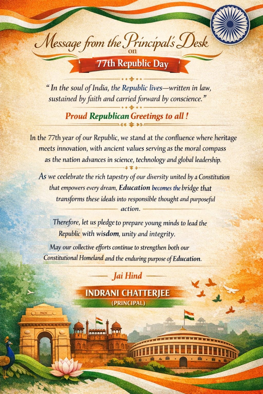 Message from the Principal's Desk on 77th Republic Day
