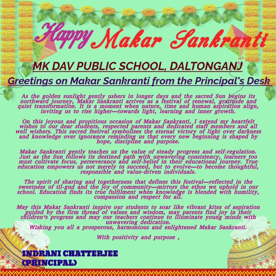Greetings on Makar Sankranti from the Principal's Desk